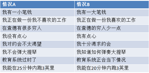 糊口中,任何但愿將情況A轉(zhuǎn)變成情況B的情形,都放在這個(gè)盒子里。情形A代表你現(xiàn)在的情況,你但愿去改變他們,情形B是理想情形。如下面的例子: