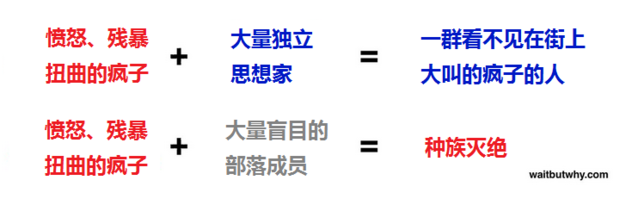 教條,不同于第一原則推理,它并不是根據(jù)信奉者自身和周遭環(huán)境而設(shè)計(jì)的,也不會(huì)根據(jù)事物的發(fā)展而改變調(diào)整。它不是可以編譯的軟件,而是已經(jīng)寫好的規(guī)則教科書。它可能是特定時(shí)間特定地點(diǎn),一些特定的人根據(jù)特定情況歸納出來的,來自良久之前或者很遙遠(yuǎn)的地方,又或者根本沒用任何原因可循。但這也無關(guān)緊要,由于毋庸置疑,你不會(huì)刨根問底,你只會(huì)接受它,擁護(hù)它并靠它指導(dǎo)糊口。 你可能也不喜歡按照別人的教條糊口,但是,你沒有太多的選擇。當(dāng)童年時(shí)的疑問得到的回答卻是 「由于我就是這么說的」的時(shí)候,你開始得到這樣的暗示「我自己的歸因能力烏煙瘴氣,假如不想搞砸自己的人生,就乖乖服從前人的經(jīng)驗(yàn),別去努力了。」成長的過程中,你開始對自己的思辨能力沒決心信念。當(dāng)你不再嘗試靠自己的思維去理解事物的因果,你便失去了揭開表面探尋自我價(jià)值的機(jī)會(huì),也無法在痛苦的實(shí)踐過程之后學(xué)會(huì)自我調(diào)整。你沒有了自己的推理,你充其量只是一個(gè)推理興趣者。 只有強(qiáng)盛的分析推理能力才能規(guī)劃出一條不同凡響的人生之路,假如沒有它們,教條很快就讓你和其他人的人生一樣。教條并不了解也不關(guān)心你,有時(shí)候甚至完全誤導(dǎo)你。這會(huì)讓一個(gè)本來能成為快樂畫家的人成為了律師,反之亦然。 但是,假如不知道如何推理,你就不知道如何進(jìn)化或者適應(yīng)。假如伴隨你成長起來的教條并不適合你,你可以拒絕它,但是,作為一個(gè)業(yè)余推理選手,獨(dú)立走過一段路后,終極你會(huì)跳上其他人的船,遵循其他模式。你不知道怎么編寫你自己人生的代碼,所以你只好安裝其他人的程序。 人們不會(huì)有意識地去做這樣的事情,通常,假如拒絕某類教條,實(shí)在就是想要擺脫教條思維下的糊口,勇敢獨(dú)立思索。但是,教條思維是種很難打破的習(xí)性,特別當(dāng)它是你獨(dú)一知道的思維方式的時(shí)候。 我有一個(gè)朋友剛有了孩子,她告訴我說,她比她父母的觀念更為開放,由于她父母要求她有一份固定的事業(yè),但她答應(yīng)自己的孩子做任何事。過了一會(huì)兒,她解釋道,「當(dāng)然,我的意思是,假如她說她要在蒙塔納的農(nóng)場渡過一生,我會(huì)覺得還好,這點(diǎn)我爸媽是絕對不答應(yīng)的。但是,假如她說她會(huì)在一個(gè)對沖基金公司做事,我會(huì)殺了她!顾庾R到她并沒有從教條思維中解放出來,相較她的父母,她只是換了一個(gè)教條的外殼罷了。 這就是教條的陷阱,很難逃脫。特別是當(dāng)教條碰到一個(gè)強(qiáng)有力的聯(lián)盟——集團(tuán)時(shí),威力更為明顯。 部落我以為一些東西是很守舊的,或者長短常不嚴(yán)謹(jǐn)?shù)。一些人以不變?yīng)萬變,對此我很懷疑。每一件事都用相同的方法解決,對我來說毫無意義。—Louis C.K. 最教條的想法主意可以用Seth Godin的名言概括:想成為我們這樣人,就做一樣的事。 這是部落文化( tribalism)的口號。 還有個(gè)重要的區(qū)別,部落文化老是具有消極含義,但部落概念本身并不消極。一個(gè)部落僅僅是一群有共同點(diǎn)的人集合起來,同樣的信奉、種、國籍、家族、人生觀、目標(biāo)等;浇毯兔绹裰鼽h都是部落。 澳大利亞人是一個(gè)部落。Radiohead迷是一個(gè)部落。阿森納迷是一個(gè)部落。紐約音樂戲院景是一個(gè)部落。天普大學(xué)是一個(gè)部落。大而疏松的部落包含很多小而緊密的次級部落。你的大家庭是一個(gè)部落,而直系支屬是一個(gè)次級部落。美國人是一個(gè)部落,德州是一個(gè)次級部落,對于阿馬里洛的福音教徒來說,德克薩斯州是更次級的部落。 部落文化的好壞取決于部落成員以及他們之間的關(guān)系。一個(gè)特別簡樸的區(qū)別: 當(dāng)部落和部落成員各自擁有獨(dú)立身份,只是碰勁有交集時(shí),這樣的部落文化就是好事。部落成員選擇成為其中一員,由于部落正好和自己很搭。假如部落或者部落成員不再適合彼此,成員就會(huì)離開這個(gè)部落。我們將此稱為「自覺的部落文化( conscious tribalism)」。 當(dāng)部落和部落成員身份統(tǒng)一時(shí),這樣的部落文化就是壞事。這種情況下,部落成員身份取決于部落教條。部落改變了,部落成員身份也隨之改變。成員身份的改變無法獨(dú)立于部落,由于他們沒有獨(dú)立身份。我們將此稱為「盲目的部落文化(blind tribalism)」。 自覺的部落文化以為,部落成員及其身份是首位的。成員身份是帶頭老大,他是誰決定了他加入哪個(gè)部落。但是盲目的部落主義以為,部落第一。部落是老大,它決定你是誰。 這不長短黑即白——是一個(gè)光譜,一個(gè)范圍—— 但是,長大后沒有強(qiáng)有力的推理能力的人會(huì)缺乏強(qiáng)盛的自我認(rèn)同,在各種事情上,易委身于盲目部落主義,特別是他們出身時(shí)接觸到的各種部落教條。這也是愛因斯坦下面這句話的意思,「很少有人能掙脫自己所處社會(huì)環(huán)境偏見的影響,平靜表達(dá)不同的觀點(diǎn),大多數(shù)人甚至都無法形成這樣的觀點(diǎn)! 一個(gè)大的部落,好比信奉、民族或者政治集團(tuán),會(huì)包適整個(gè)光譜范圍中的各