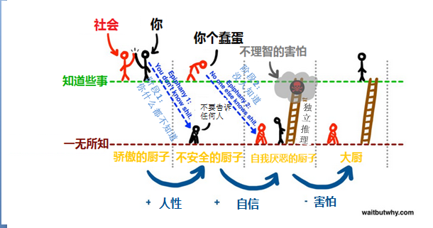 大廚和廚子一樣憎惡風(fēng)險(xiǎn)——假如一個(gè)大廚在一場危險(xiǎn)的戰(zhàn)爭中終極鋃鐺入獄淪為囚徒,或者引發(fā)極嚴(yán)峻的財(cái)務(wù)危機(jī),他就不是個(gè)大廚,只是個(gè)活在「我,不可擊敗」教條下的廚子。當(dāng)大廚們展現(xiàn)出貌似不可思議的勇氣時(shí),他們通常處在大廚實(shí)驗(yàn)室階段。大廚實(shí)驗(yàn)室,恰是通往很多人夢想之地的地方——職業(yè)、愛情和冒險(xiǎn)之夢。但是,即使實(shí)驗(yàn)室的門老是敞開著,絕大多數(shù)人也不會(huì)踏入一步,原因和良多美國人從不造訪世上最有趣國家的原因一樣——由于他們錯(cuò)誤地以為,那些目的地是危險(xiǎn)的。當(dāng)談到什么構(gòu)成了危險(xiǎn)時(shí),他們通過類比推理得犯錯(cuò)誤的結(jié)論,自我否定廚子們正錯(cuò)失所有的樂趣。 誤區(qū)2:錯(cuò)誤的定位自我否定的廚子們的第二大題目,像良多廚子一樣,他們不知道自己是實(shí)驗(yàn)室里的科學(xué)家,而不是實(shí)驗(yàn)本身。 就像之條件到的,自覺部落成員能夠得出結(jié)論,而盲目部落成員本身就是結(jié)論。你所信奉的、代表的、你天天做的事情,都是你自己的研究結(jié)果。 就社會(huì)而言,當(dāng)你嘗試某事——價(jià)值、潮流、宗教、職業(yè)等方面——實(shí)在已經(jīng)是在給自己貼標(biāo)簽了。人們喜歡簡化人,以便搞清晰他們在想什么,因此,通過將你放到一個(gè)貼著清晰標(biāo)簽、過度簡化的盒子里,部落進(jìn)一步強(qiáng)化了你的標(biāo)簽。 上述內(nèi)容無異于是在說,改變是件非常痛苦的事。對于那些面臨身份轉(zhuǎn)換的人來講,這點(diǎn)尤甚。部落的其他人也不會(huì)讓改變簡樸些。盲目的部落成員不喜歡其他成員發(fā)生變化——這會(huì)讓他們感到疑惑,迫使他們重新調(diào)整腦海中的信息,這會(huì)威脅到部落的簡樸性。因此,嘗試進(jìn)化會(huì)常常遭到反對,冷笑或怒火。 身處痛苦蛻變中時(shí),你會(huì)依戀當(dāng)下身份和正在做的事情——如斯依戀以至于恍惚了科學(xué)家和實(shí)驗(yàn)本身的區(qū)別,健忘這是兩件完全不同的事情。 我們討論過為什么科學(xué)家歡迎關(guān)于實(shí)驗(yàn)的負(fù)面反饋,但假如你是實(shí)驗(yàn)本身,那么,負(fù)面評價(jià)對于你來說并不是一則有益的新聞——而是攻擊。你感到受傷,由于改變對你來講是不可能的,那些負(fù)面的評價(jià)沒什么好處。我們還討論過,為什么科學(xué)家期待他們的實(shí)驗(yàn)以失敗告終,但是,假如你和你的實(shí)驗(yàn)是一個(gè)整體,是一回事,那么,這不但為身份轉(zhuǎn)換設(shè)定了新目標(biāo),還會(huì)將你的身份置于險(xiǎn)境,假如實(shí)驗(yàn)失敗,你也失敗了。毀滅,永遠(yuǎn)地。 我跟馬斯克談到過美國,討論過建國之父們?nèi)绾卫玫谝辉磉M(jìn)行推理。他以為,他們可以這樣推理的原因在于擺在面前的是一塊等待加工的嶄新白板。那個(gè)時(shí)代的歐洲國家很難有機(jī)會(huì)做這樣的嘗試,由于,正如馬斯克告訴我的,「(他們)困于自己的歷史! 我聽說,馬斯克用類似的比喻描述過當(dāng)今的汽車企業(yè)和航空航天公司,他以為特斯拉的SpaceX如18世紀(jì)末的美國,全新實(shí)驗(yàn)室如雨后春筍蓬勃興起。但當(dāng)他面臨行業(yè)內(nèi)的其它公司時(shí),他以為,在執(zhí)行策略過程中,他們無法保持空杯心態(tài)。談到航空航天產(chǎn)業(yè),馬斯克表示:「他們對承擔(dān)風(fēng)險(xiǎn)持有大量的偏見,每個(gè)人只試圖鞏固自身最大權(quán)益! 在歷史中輪回往復(fù)意味著你不知道如何改變,你已經(jīng)健忘了如何革新,世界為你打上標(biāo)簽,你深陷其中無法自拔,終極,你會(huì)成為我們提及的那些只選擇在最佳恬靜區(qū)嘗試成功概率較大的癌癥實(shí)驗(yàn)的研究員們。 這也是喬布斯以為1986年被蘋果驅(qū)逐是塞翁失馬的原因。他曾表示:「從蘋果公司被炒是這一生最棒的事情,一個(gè)成功者的負(fù)重感被一個(gè)創(chuàng)業(yè)者的輕松感所替換,這件事讓我倍感自由,從此邁入了生命中最具創(chuàng)造力的階段!贡怀吹舻膯滩妓棺杂蓴[脫了歷史的鐐銬。 所以,自我厭惡的廚子捫心自問的是:「我陷入了歷史經(jīng)驗(yàn)的困局嗎?」一如他站在懸崖邊預(yù)備高飛,卻發(fā)現(xiàn)已無力展翅。從進(jìn)化為人、開始改變,直至大膽勇敢嘗試非同平常的事情,什么阻礙了自身發(fā)展?是自我綁架的身份嗎? 自我厭惡廚子對恐驚的信念,和缺乏自信的廚子以為傳統(tǒng)聰明能解答一切題目一樣,都不是真的 (幻覺而已——譯者)。你可以四處觀察到支持「其他人也不知道」這一啟示的證據(jù),但是,「既不失敗也不變化,實(shí)在很要命」這一啟示, 只能親自體驗(yàn)并加以觀察。只有在克服自身恐驚后,你才能體會(huì)這一點(diǎn)…假如你經(jīng)歷過改變失敗,并意識到?jīng)]發(fā)生什么壞的事情,你才能體會(huì)這一點(diǎn)。又是一個(gè)兩難困境。 這就是我相信如斯多的能人會(huì)陷入自我厭惡廚子式的糊口的原因,由于這個(gè)啟示缺乏應(yīng)許之地(promised land)。 踐行最后一條啟示所面對的挫折是,要找出不把自身恐驚當(dāng)回事兒的辦法。把恐驚當(dāng)回事兒是人類的生理反應(yīng),削弱它的獨(dú)一辦法