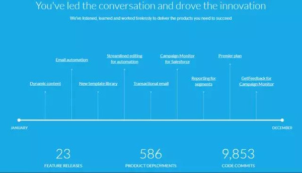年年月月花相似,但靈感迸發(fā)的設(shè)計師們可不會拘泥于前人之作。相同的祝福,更高的愿景與期許,更精湛的設(shè)計巧思,每年的新年網(wǎng)站,無疑都是一場視覺與創(chuàng)意的盛宴。 飛向新出發(fā)點pernod-ricard 網(wǎng)站地址:http://new-year.pernod-ricard.com/ 新的一年永遠是揚帆起航的日子,這對于Pernod-Ricard這一世界級酒類出產(chǎn)商也一樣,正如設(shè)計師想表達的那樣——去飛吧,穿過宏偉的云層,來到但愿的神殿。 首頁載入完畢后,設(shè)計師就讓用戶穿越云層來到第二“天”。首頁氣魄恢宏,全動態(tài)頁面向用戶展示了一個洶涌澎湃的天空世界,也將企業(yè)的格式和愿望顯示的淋漓盡致。而導(dǎo)航頁頁面之上仿佛讓用戶早已登上了云層的頂端,已經(jīng)“一覽眾云小”;一串祝福案牘在畫面正中,先其他元素一步表達主題。導(dǎo)航欄做成了8個菱形塊,每一個幾何體背后都是一段小視頻,展示著企業(yè)的瞻望之意。 但設(shè)計師不會只知足云層殊效,于是他們在每一個導(dǎo)航下面,設(shè)計師將與流動、發(fā)生了什么事糅合在一起,而且都是以創(chuàng)意的“飛行模式”展開,充分描繪了趣味性,也讓消費者感慨感染到這家公司的好與壞。 寫下你的新年祝福,我為你展現(xiàn) evs新年網(wǎng)站 網(wǎng)站地址:http://xmas.evs.com/summary 作為一個迎新站,EVS網(wǎng)站的設(shè)計夸大互動這一層面——網(wǎng)站以make anew-year-message為主題,通過自己公司員工進行字母演繹,按照用戶所設(shè)定的序列排列出來。而這些都可以由用戶自行“DIY”。第一條“togetherwe’re making extrordinary”則是公司自行設(shè)計的迎新Slogan,當(dāng)用戶進入網(wǎng)頁時就會自動播放,這不但引發(fā)了用戶創(chuàng)造屬于自己內(nèi)容的沖動,而且還傳遞了自身品牌。 作為一個廣告服務(wù)公司的網(wǎng)站,EVS新年網(wǎng)站天然在設(shè)計之上也可圈可點,大面積純色排版、富有沖擊力的色調(diào)展示,展示出一個網(wǎng)站不凡的表現(xiàn)空間。而手寫體的文字、單屏頁面的板式也同時將網(wǎng)站變成了一個顯現(xiàn)企業(yè)風(fēng)格的地方。 再見,我們的2015 campaignmonitor新年網(wǎng)站 網(wǎng)站地址:https://www.campaignmonitor.com/2015/ 當(dāng)所有迎新網(wǎng)站大紅大綠之時,源自Saleforce的Campaignmonitor網(wǎng)站卻冷靜的打出自己的主題——“review”,獨具創(chuàng)意地用數(shù)據(jù)進行展示,為其所服務(wù)過的企業(yè)做了一個宏觀服務(wù)講演。讓“圈里人”人深刻的意識到自己所在的2015年畢竟發(fā)生了什么,也同時鞏固了企業(yè)的“江湖地位”。 也許源自自身在數(shù)據(jù)運營層面極深的造詣,campaignmonitor的設(shè)計師將網(wǎng)站設(shè)計出了一個數(shù)據(jù)講演的味道,長頁面設(shè)計讓每一頁用不同的顏色以及各種圖表展示出多種數(shù)據(jù)。而且所有頁面都有一個相互聯(lián)系關(guān)系的主題,從2015年的方方面面展示著企業(yè)所服務(wù)的客戶與整個營銷“大世界”絲絲縷縷的關(guān)系,讓每個客戶在讀到頁面之時都能得到深深的觸動。 整個網(wǎng)站已經(jīng)被設(shè)計師幾乎完全“數(shù)據(jù)化”,像是一張張商務(wù)幻燈片。但是網(wǎng)站設(shè)計卻涓滴沒有讓人有閱覽時的不適感,反而感到每一頁被銜接的恰到好處,而這恰是設(shè)計師對于網(wǎng)站元素靈活掌握的體現(xiàn)之處——哪幾頁用數(shù)字,哪幾頁用圖片,都是建立在設(shè)計師節(jié)奏把控之上。 海闊天空 stellar.aero2016年新航線預(yù)報 網(wǎng)站地址:https://www.stellar.aero/ 新的開端意味著無窮潛力與可能,也象征著未知的機遇與挑戰(zhàn),這句話對于Stellar航空公司來說不能更加貼切,向天空挑戰(zhàn),挖掘更多的可能無疑成為了他們新一年的目標!而這種愿望也被設(shè)計語言重新描繪,展現(xiàn)在了Stellar官網(wǎng)上,高遠遼闊的天空,旖旎壯麗的景觀,以及交相照映的“飛機與天空”的和諧友好,為來年譜寫了一章漂亮的序言。 網(wǎng)站首頁采用長頁面的設(shè)計形式,利用通屏大背景與文字排版組合,配合殊效,奏響了視覺上華麗的篇章。本站通過表達“飛機”與“天空”的關(guān)系,對實力的塑造交上了滿足的謎底。首頁對殊效的運用,不管是視頻的運用,仍是流線、幾何圖形的運用,都配合行業(yè)特點,極為流暢天然,一氣呵成。 而在內(nèi)頁的設(shè)計上,本站更多采用的是對稱設(shè)計的形式,遵循對稱的規(guī)則,對圖片和文字進行排版,工整有序,簡潔天然。本站較為注重留白的運用,不管是圖片比例,仍是頁面設(shè)計,都留給了用戶留下了充分想象的空間。 “無聊網(wǎng)站”第一彈——讓你的新年祝福升空吧 網(wǎng)站地址:http://www.activation-nodeplus.com/archive/cny2015/ activation-nodeplus.com是基于“新年主題”衍生出來的一個創(chuàng)意策劃——呈現(xiàn)載體為煙花,首頁引導(dǎo)頁過后,關(guān)于創(chuàng)意的使用說明簡潔明了的呈現(xiàn)在屏幕中間。輸入框,輸入任意字符,點擊繼承,玄色背景上,煙花粲然綻放,組成你輸入的字符,再度炸裂成碎片。為增加網(wǎng)站動感,除煙花動效外,玄色星空還伴跟著鼠標隨意扭動,以上內(nèi)容構(gòu)成了本站的主體內(nèi)容。 區(qū)別于普通網(wǎng)站,以創(chuàng)意作為支撐的趣味性網(wǎng)站大多挖