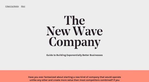 過去幾年中,網(wǎng)站設(shè)計(jì)中十分流行大標(biāo)題背景圖像,上面常常有文字說明,這也是大多數(shù)訪客瀏覽網(wǎng)站時(shí)首先看到的東西。而在大標(biāo)題背景圖像如斯流行的情況下,你的網(wǎng)站如何能脫穎而出呢?采取相反措施。近來泛起的一些網(wǎng)站逆勢(shì)而行,即沒有大標(biāo)題背景圖像。我猜,他們這樣做不僅僅是不愿意追隨潮流,而且也在尋求進(jìn)步網(wǎng)站的機(jī)能與速度。New Wave Company的網(wǎng)站就體現(xiàn)出這些特點(diǎn)。它使用大標(biāo)題歡迎訪客,大字體集中在網(wǎng)頁中央,但標(biāo)題后面沒有大背景圖片。這是一種高雅的做法,效果并不次于其他使用大背景圖像的流行網(wǎng)站設(shè)計(jì)。