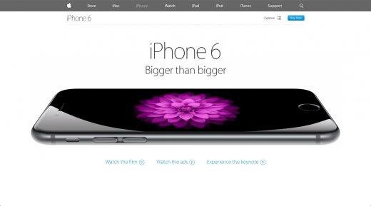 今天泛起的大多數(shù)新網(wǎng)站傾向于更長(zhǎng)的頁面,并通過動(dòng)彈方式翻頁。跟著移動(dòng)設(shè)備越來越受歡迎,以動(dòng)彈方式瀏覽顯示器上的內(nèi)容變得越來越常見,正代替點(diǎn)擊方式,特別是在設(shè)備的主頁面上。對(duì)于用戶來說,以動(dòng)彈翻頁的方式獲得信息顯然比不斷地點(diǎn)擊按鈕更簡(jiǎn)樸。 主頁并非動(dòng)彈翻頁越來越流行的獨(dú)一地方。跟著超長(zhǎng)動(dòng)彈網(wǎng)站(即一頁式網(wǎng)站)日益變得熱點(diǎn),動(dòng)彈帶來的好處也更多,除主頁面外的其他很多地方也開始泛起這種模式,好比有關(guān)網(wǎng)頁以及產(chǎn)品網(wǎng)頁等,它們都已成為展示各種內(nèi)容的簡(jiǎn)樸顯示方式。好比,蘋果iPhone 6的動(dòng)彈翻頁方式已經(jīng)擴(kuò)展到很多地方,可以展示該產(chǎn)品各種特點(diǎn)和機(jī)能。此外,iPhone 6網(wǎng)站也增加了一些流暢的動(dòng)畫,讓動(dòng)彈體驗(yàn)在視覺上變得更具吸引力。