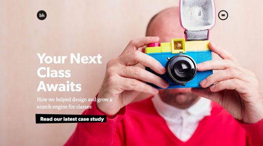 圖庫(kù)照片依然在設(shè)計(jì)中據(jù)有一席之地,但是對(duì)于大多數(shù)最新泛起的網(wǎng)站來說,圖庫(kù)照片開始采取高質(zhì)量的專業(yè)攝影照片,它們通常是唯一無二的,專為網(wǎng)站自定義拍攝的。使用自定義攝影比僅選區(qū)圖庫(kù)照片在設(shè)計(jì)方面取得了更大提高,它讓你的網(wǎng)站唯一無二,其他網(wǎng)站無法使用同樣的照片。好比,Grain and Mortar網(wǎng)站的自定義照片使用了該網(wǎng)站的大標(biāo)題,這展現(xiàn)出個(gè)性化效果,由于照片上的人和辦公場(chǎng)景都是在Grain and Mortar真實(shí)存在的,究竟沒有假辦公空間的圖庫(kù)照片!