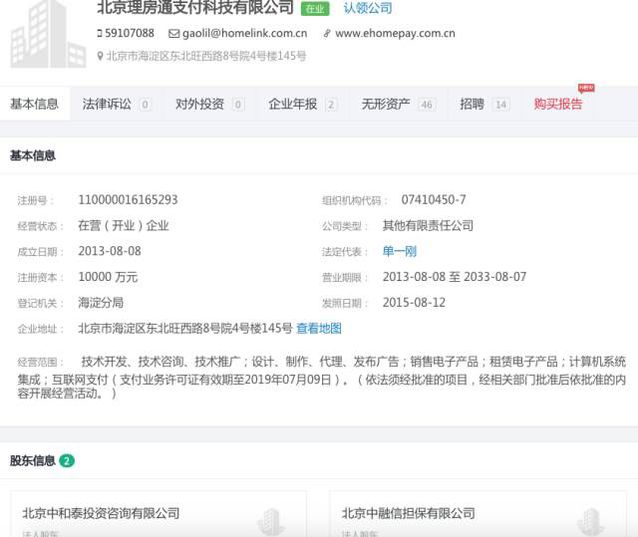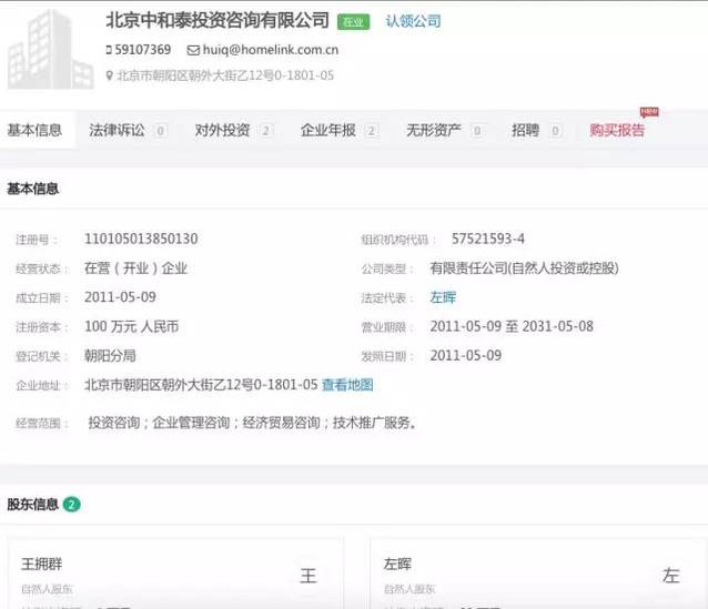 (相關(guān)工商資料信息來自企查查) 理房通注冊于2013年8月,法人為單一剛,身份是鏈家地產(chǎn)的執(zhí)行董事。理房通的股東為中融信擔(dān)保和北京中和泰投資咨詢有限公司兩家,而北京中和泰投資咨詢有限公司的股東除鏈家地產(chǎn)董事長左暉外,還有鏈家地產(chǎn)副總裁王擁群。