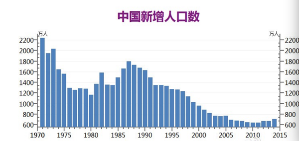 非常顯著,由正常的金字塔結(jié)構(gòu)變?yōu)殚L方形行結(jié)構(gòu),可見養(yǎng)老負擔過重。 而阿里多數(shù)是以小件物品、日常消費為主,消費者以當下15——35歲區(qū)間,也就是80后人口居多,大家也認識了網(wǎng)購。 而我國社會,正處于“供應(yīng)側(cè)改革階段”,由出產(chǎn)更多產(chǎn)品,知足人民日益上漲的物質(zhì)需求;轉(zhuǎn)變?yōu)椋撼霎a(chǎn)高質(zhì)量產(chǎn)品,知足人民群眾的精神需求。 買個產(chǎn)品,僅僅能用,這是不行的;85后年青一代,需要它酷;70后——85后,需要它健康。 這個需求是日益顯著的。 再看看看新增人口情況。
