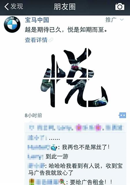 實(shí)在,想想這招微信也用過(guò),只不外推送的廣告,常常被屏蔽,而且不同用戶接受的不同,好像也在暴露階層差異引發(fā)網(wǎng)友狂噴:憑什么人家推送寶馬中國(guó)給我推送可口可樂(lè)?這簡(jiǎn)直是赤果果的歧視!不能忍!小樣兒,你過(guò)來(lái),我保證不打死你!