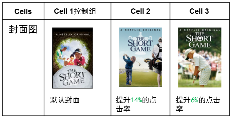 Netflix 隨后建立了一個封面圖自動分類系統(tǒng),將共用一張背景圖但具有不同長寬比、裁剪位置、小規(guī)模修整以及標題經(jīng)由局部處理的封面圖分為一組作為比較,并在網(wǎng)站上的不斷重復(fù)試驗,以追蹤具有相似特征的封面圖吸引點擊的效果。 下面是一些案例: 兩張標記封面圖效果明顯優(yōu)于其他實驗對象