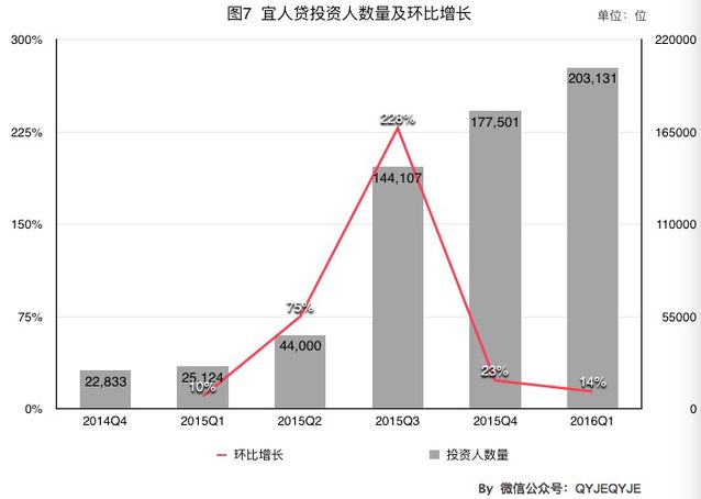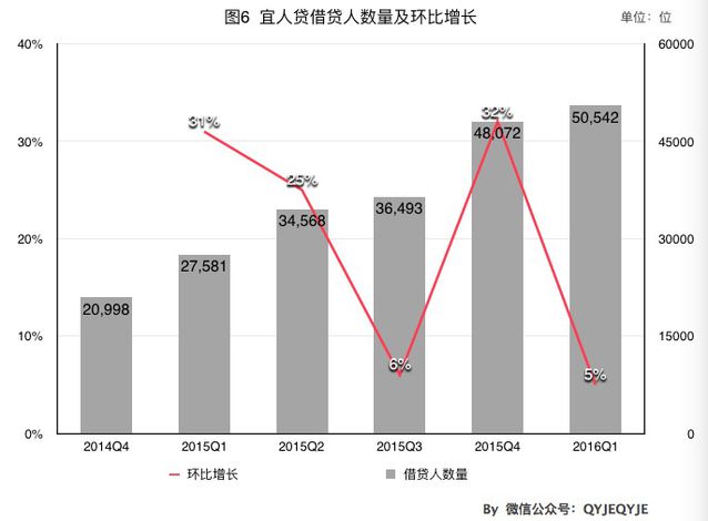 單借款人數(shù)變化情況,與看點(diǎn)一整體波動(dòng)情況以及正?袋c(diǎn)二波動(dòng)情況相似。增速都是在2015Q3季度泛起相對低谷;跟著宜人貸上市,泛起短暫的反彈;而后跟著整體宏觀環(huán)境,達(dá)到歷史最低點(diǎn)。 當(dāng)然,整體絕對值情況,仍舊是繼承不亂發(fā)展。
