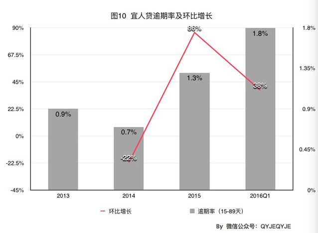 D類不受司法保護(hù)的居然占到了84%,利率高達(dá)39.5%,這仍是普惠金融嗎?風(fēng)險(xiǎn)敞口過大。 想起5月12日的動(dòng)靜,谷歌將從7月13日開始,不再支持貸款期限在60天內(nèi)的貸款廣告,也不支持利率達(dá)到或是超過36%的廣告。 已經(jīng)寫不下去了……究竟是海內(nèi)行業(yè)標(biāo)桿,大家明白怎么回事就行。 總之,宜人貸選了一條不歸路,前途崎嶇啊! 剛剛擔(dān)心風(fēng)險(xiǎn)敞口過大的題目,在圖10有顯示: