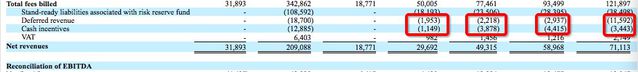 (注:總凈營收,是指總收費(fèi)額扣除風(fēng)險(xiǎn)預(yù)備金、遞延收入以及高管的現(xiàn)金獎(jiǎng)勵(lì)后的收入情況) 正常情況下,根據(jù)會(huì)計(jì)信息的配比原則(matching principle)和財(cái)務(wù)信息內(nèi)在一致性邏輯原則,總凈營收應(yīng)該與平臺貸款總額(理解成電商GMV)和總收費(fèi)額(理解成毛收入)應(yīng)該泛起同樣的拐點(diǎn)。 (注:配比原則通俗來說,就是有多大的場面,就應(yīng)該有相匹配的收入和用度;內(nèi)在一致性原則,就是說相關(guān)財(cái)務(wù)數(shù)據(jù),內(nèi)在存在一定意義上的比例關(guān)系) 然而我們觀察到波動(dòng)里泛起了一些失常情況,原本Q2應(yīng)該凈營收繼承下降的,卻意外的上升。2016Q1季度凈營收,應(yīng)該達(dá)到最低點(diǎn),然而卻與2015Q4季度持平。其他情況,基本與看點(diǎn)一描述的類似。