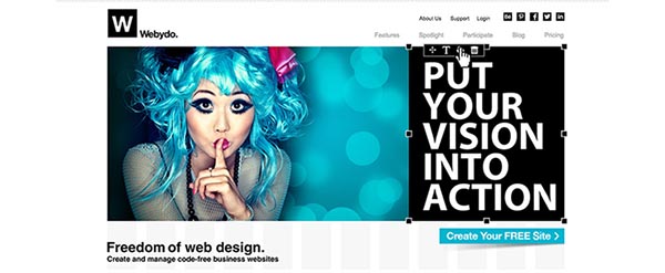 你可能是設(shè)計界大佬,卻不擅長編程;或者你擅長編程分析思維,甚至足夠有創(chuàng)意……但不管你將自己裝備至多么完備,也幾乎無法在繁忙的創(chuàng)意工作中再抽出時間拓展客戶庫。這就是題目所在,不管是多么有本領(lǐng)的人,都有力所不能及的時候,這時候借助好的平臺和工具就顯得十分重要了。 懂得利用網(wǎng)站構(gòu)建平臺、內(nèi)容治理系統(tǒng)或WordPress插件能夠匡助你節(jié)省寶貴時間。 Webydo 我們首先先容這個以瀏覽器為主的網(wǎng)頁設(shè)計平臺,在專為網(wǎng)頁設(shè)計師和專業(yè)設(shè)計工作室服務(wù)的強盛平臺上構(gòu)建網(wǎng)站、治理客戶網(wǎng)站,就能輕松得到優(yōu)秀網(wǎng)站。