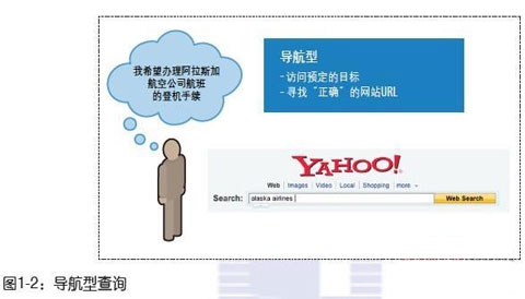1.4.1 導航型查詢 導航型查詢的目的是直接閱讀某個特定的網站。在某些情況下,用戶可能不知道準確的URL,查找引擎這時起到電話號碼簿的效果。