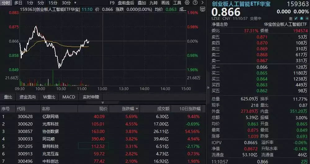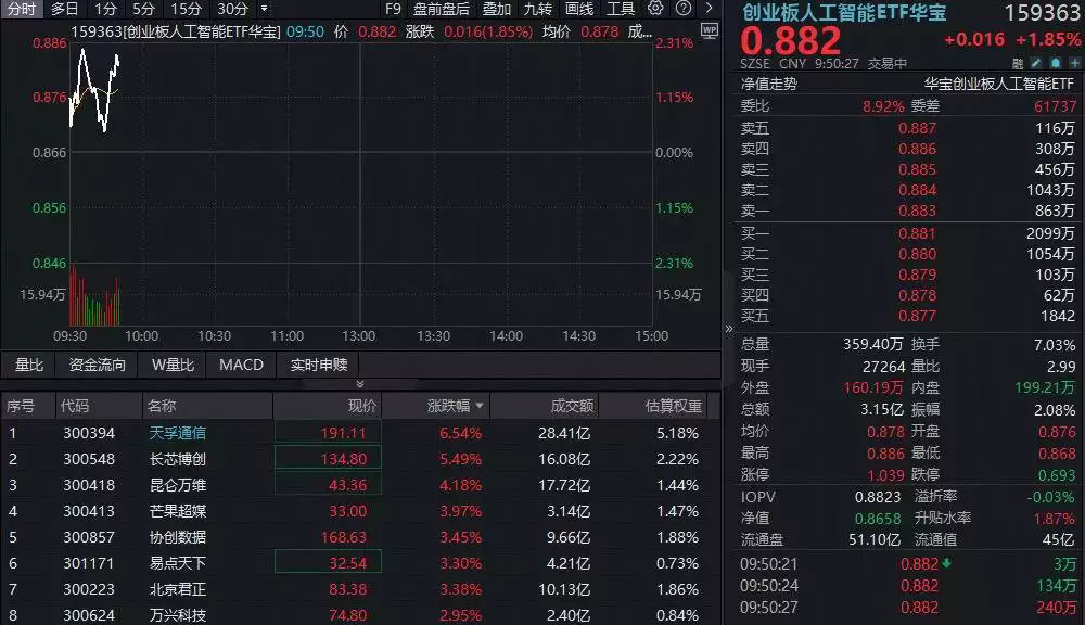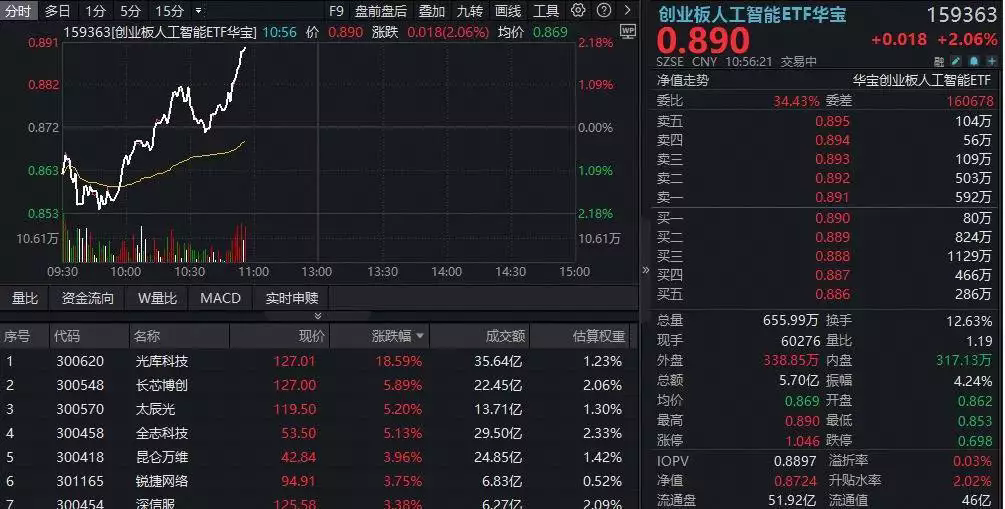 創(chuàng)業(yè)板人工智能板塊今天(2025年9月18日)出現(xiàn)了探底回升的走勢,光模塊板塊表現(xiàn)尤為強勁,帶動相關ETF和個股上漲。18日早盤,